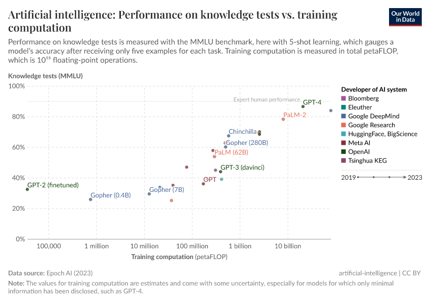 Charlie Giattino, Edouard Mathieu, Veronika Samborska, and Max Roser (2023) - “Artificial Intelligence” Published online at OurWorldinData.org. Retrieved from: 'https://data-auxiliary-trade.owid.pages.dev/artificial-intelligence' [Online Resource]BibTeX citation