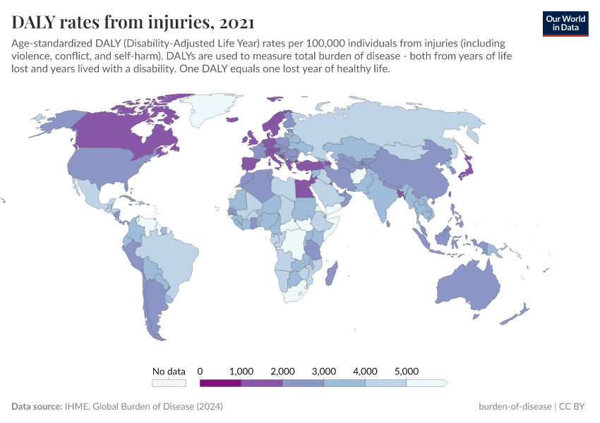 Max Roser, Hannah Ritchie, and Fiona Spooner (2021) - “Burden of Disease” Published online at OurWorldinData.org. Retrieved from: 'https://data-auxiliary-trade.owid.pages.dev/burden-of-disease' [Online Resource]BibTeX citation