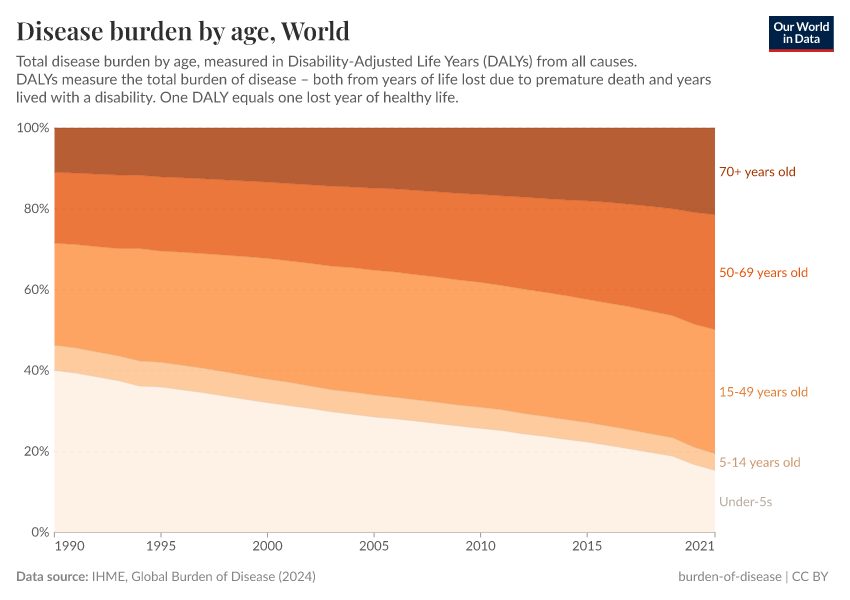 As you can see, rates of disease burden remain highest among the youngest and oldest in society. They have, however, seen the most notable declines in recent decades.