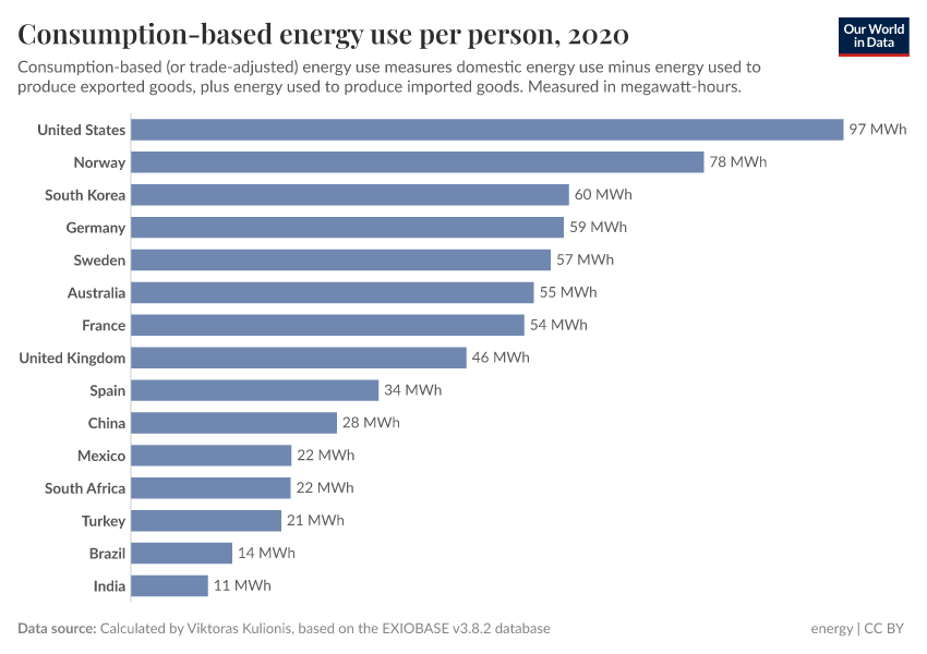 We know this because when we look at production-based electricity or energy use, the differences can be as large as 1000-fold.