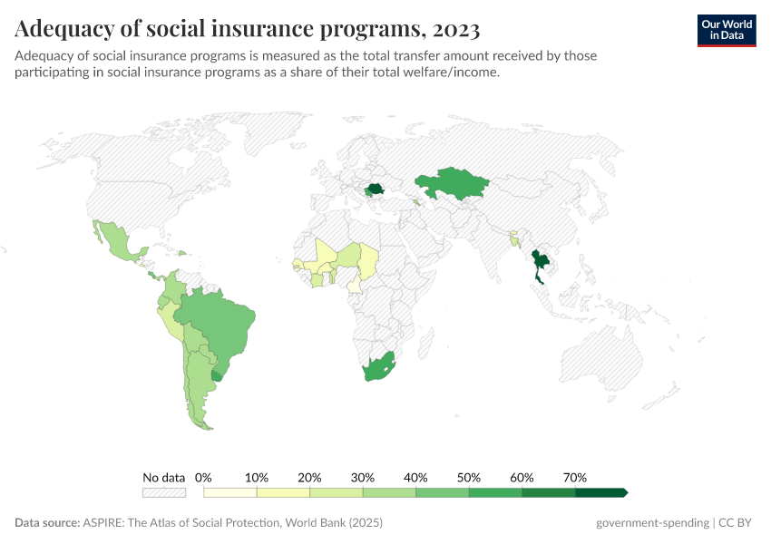 ASPIRE: The Atlas of Social Protection, World Bank (2025) – processed by Our World in Data. “Adequacy of social insurance programs” [dataset]. ASPIRE: The Atlas of Social Protection, World Bank, “World Development Indicators” [original data]. Retrieved September 5, 2025 from https://data-auxiliary-trade.owid.pages.dev/grapher/adequacy-of-social-insurance-programs