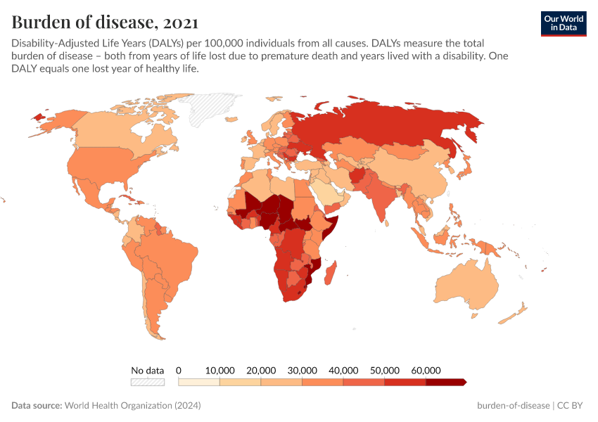 “Data Page: Burden of disease”, part of the following publication: Esteban Ortiz-Ospina and Max Roser (2016) - “Global Health”. Data adapted from World Health Organization. Retrieved from https://data-auxiliary-trade.owid.pages.dev/grapher/burden-of-disease-who [online resource]How to cite this data
