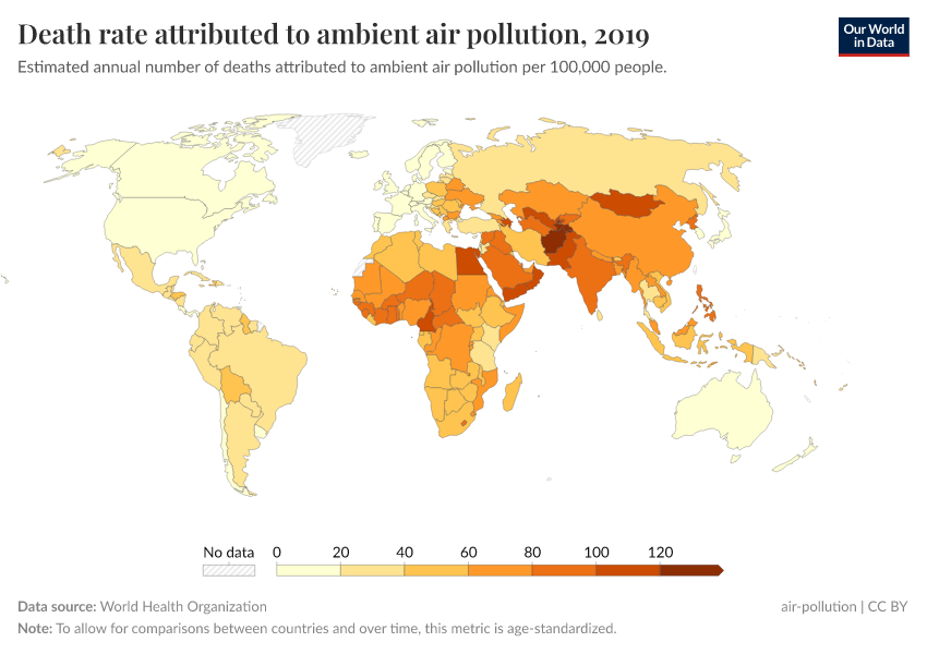 “Data Page: Death rate attributed to ambient air pollution”. Our World in Data (2025). Data adapted from World Health Organization. Retrieved from https://data-auxiliary-trade.owid.pages.dev/grapher/death-rate-ambient-air-pollution [online resource]How to cite this data