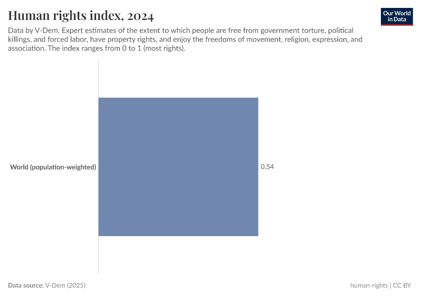 V-Dem (2025) – processed by Our World in Data. “Human rights index – V-Dem” [dataset]. V-Dem, “Democracy report v15” [original data]. Retrieved September 5, 2025 from https://data-auxiliary-trade.owid.pages.dev/grapher/human-rights-index-vdem