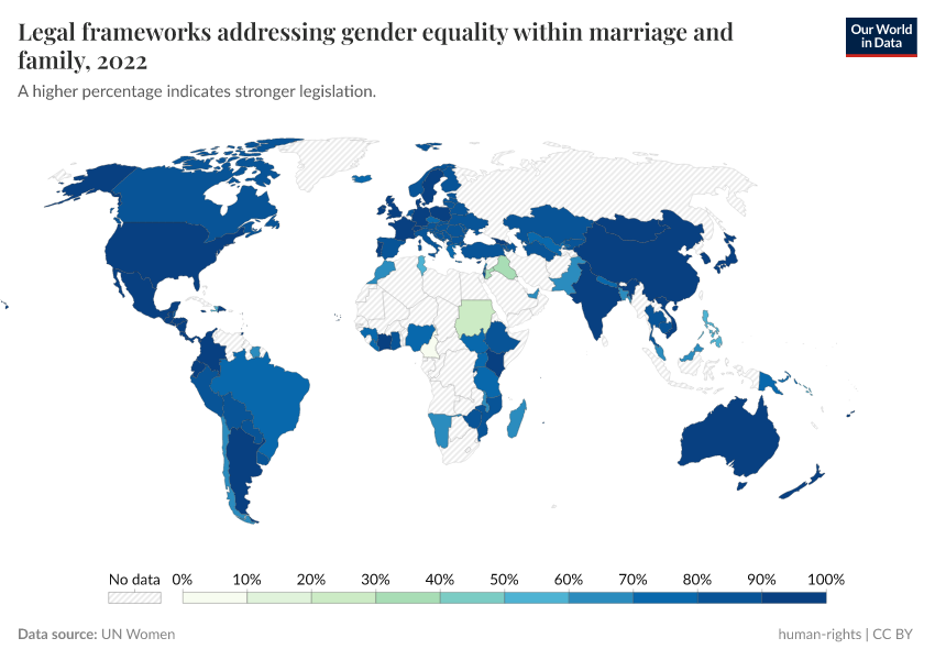 “Data Page: Legal frameworks addressing gender equality within marriage and family”. Our World in Data (2025). Data adapted from UN Women. Retrieved from https://data-auxiliary-trade.owid.pages.dev/grapher/legal-frameworks-gender-equality-within-marriage-and-family [online resource]How to cite this data