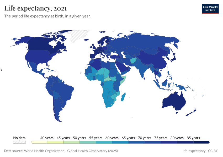 “Data Page: Life expectancy”. Our World in Data (2025). Data adapted from World Health Organization. Retrieved from https://data-auxiliary-trade.owid.pages.dev/grapher/life-expectancy-at-birth-who-gho [online resource]How to cite this data