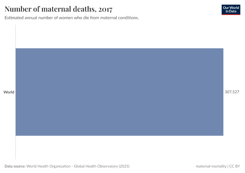 “Data Page: Number of maternal deaths”. Our World in Data (2025). Data adapted from World Health Organization. Retrieved from https://data-auxiliary-trade.owid.pages.dev/grapher/number-of-maternal-deaths [online resource]