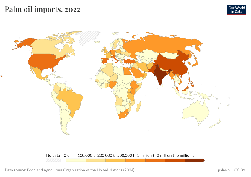 “Data Page: Imports of palm oil”. Our World in Data (2025). Data adapted from Food and Agriculture Organization of the United Nations. Retrieved from https://data-auxiliary-trade.owid.pages.dev/grapher/palm-oil-imports [online resource]How to cite this data