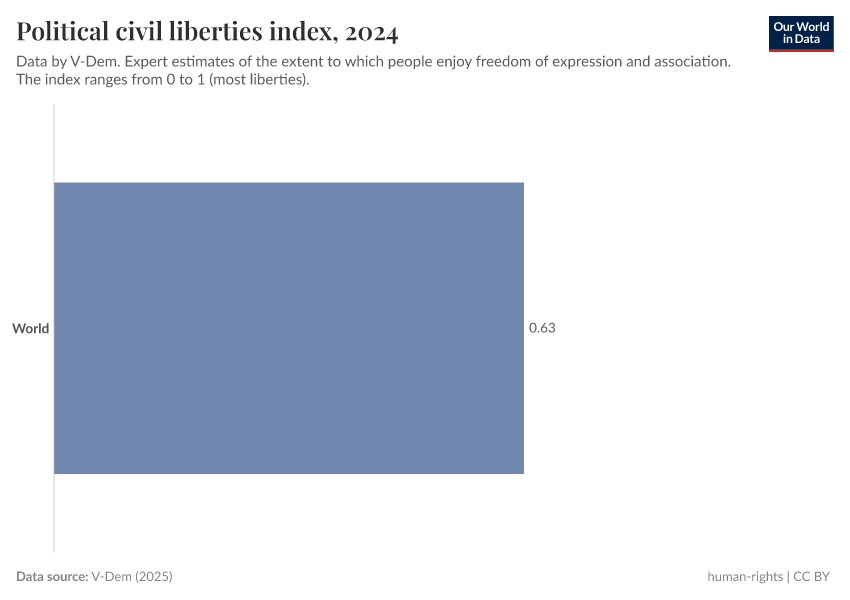 “Data Page: Political civil liberties index”, part of the following publication: Bastian Herre, Lucas Rodés-Guirao, and Esteban Ortiz-Ospina (2013) - “Democracy”. Data adapted from V-Dem. Retrieved from https://data-auxiliary-trade.owid.pages.dev/grapher/political-civil-liberties-index [online resource]How to cite this data