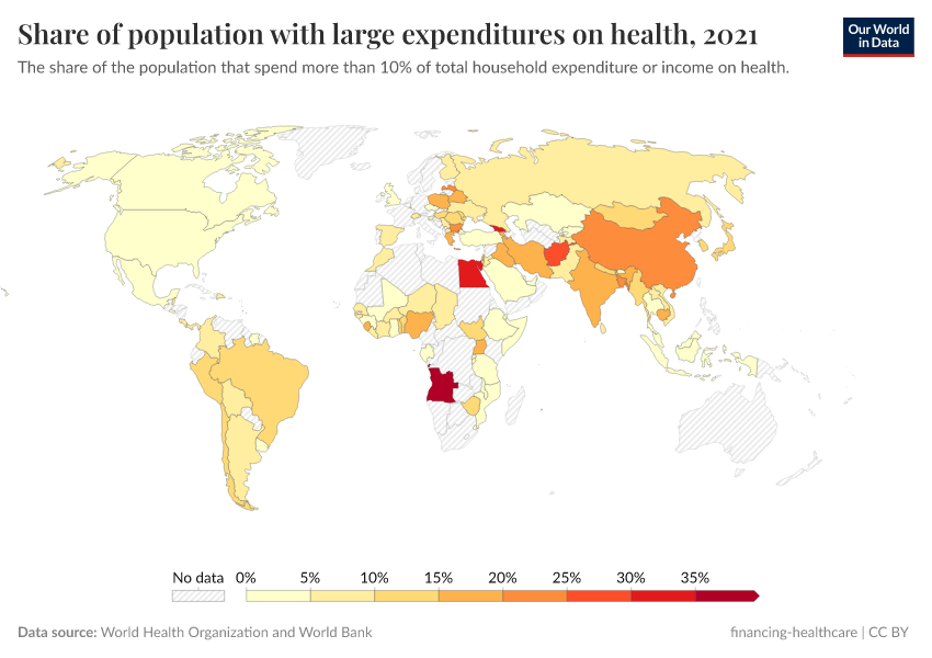 World Health Organization and World Bank – processed by Our World in Data. “Share of population with large expenditures on health” [dataset]. World Health Organization and World Bank, “Data from multiple sources” [original data]. Retrieved September 5, 2025 from https://data-auxiliary-trade.owid.pages.dev/grapher/share-of-population-with-large-household-expenditures-on-health-10pc