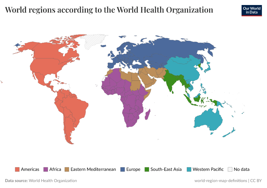 “Data Page: World regions according to the World Health Organization”. Our World in Data (2025). Data adapted from World Health Organization. Retrieved from https://data-auxiliary-trade.owid.pages.dev/grapher/who-regions [online resource]How to cite this data