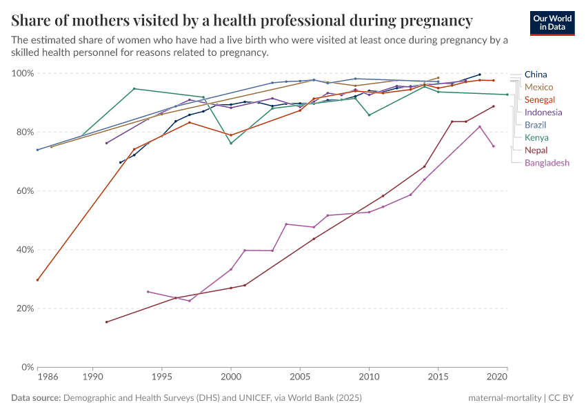 Recent data on maternal mortality shows continuing improvements around the world, as the interactive chart below shows.