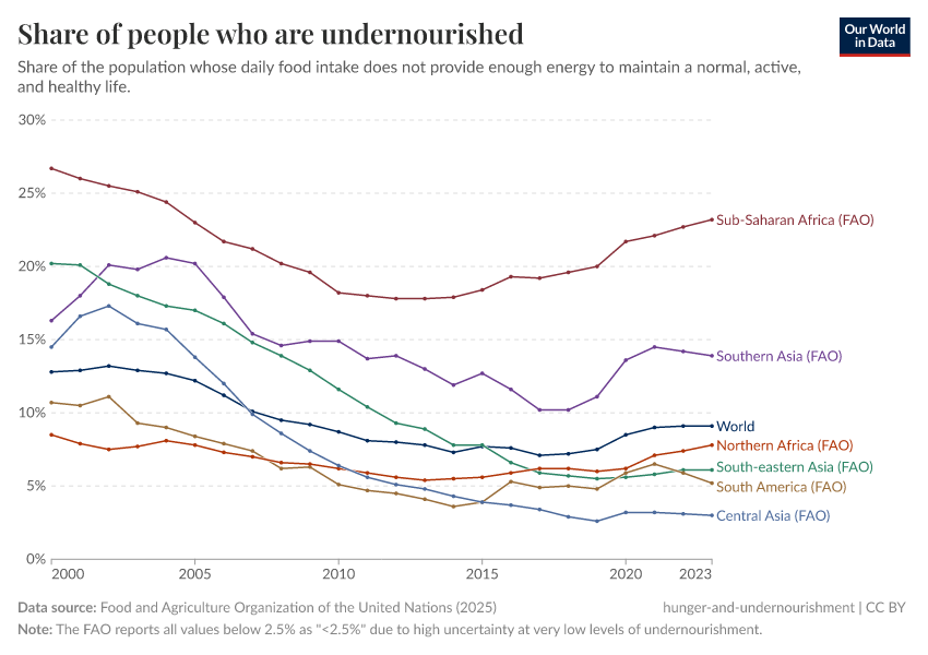 Hannah Ritchie, Pablo Rosado, and Max Roser (2023) - “Hunger and Undernourishment” Published online at OurWorldinData.org. Retrieved from: 'https://data-auxiliary-trade.owid.pages.dev/hunger-and-undernourishment' [Online Resource]BibTeX citation