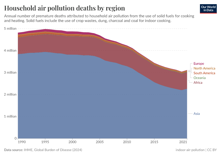 This means that despite continued population growth in recent decades, the total number of deaths from indoor air pollution has still declined.