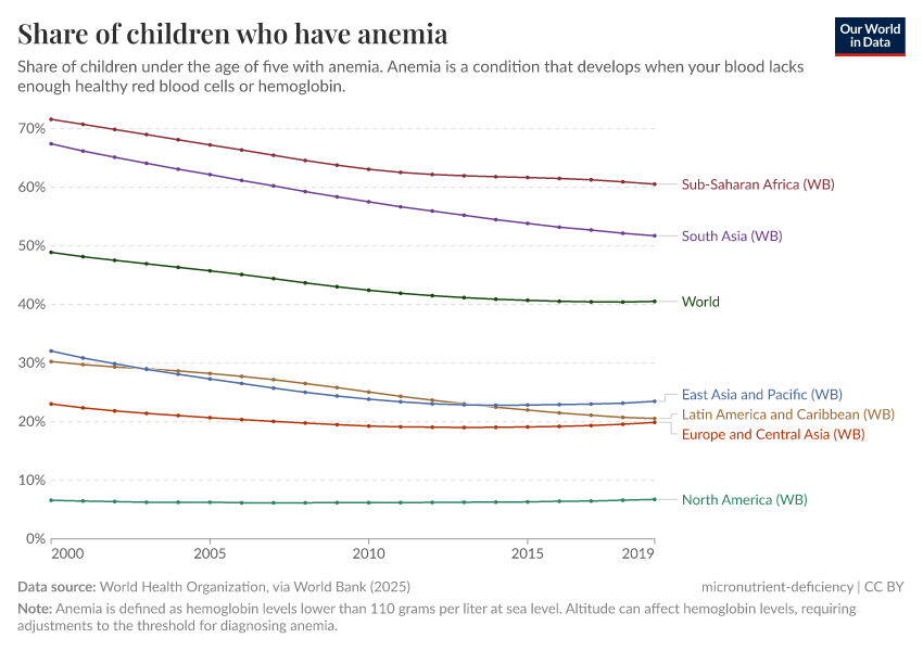 In the chart, we see the prevalence of anemia in children under the age of five.