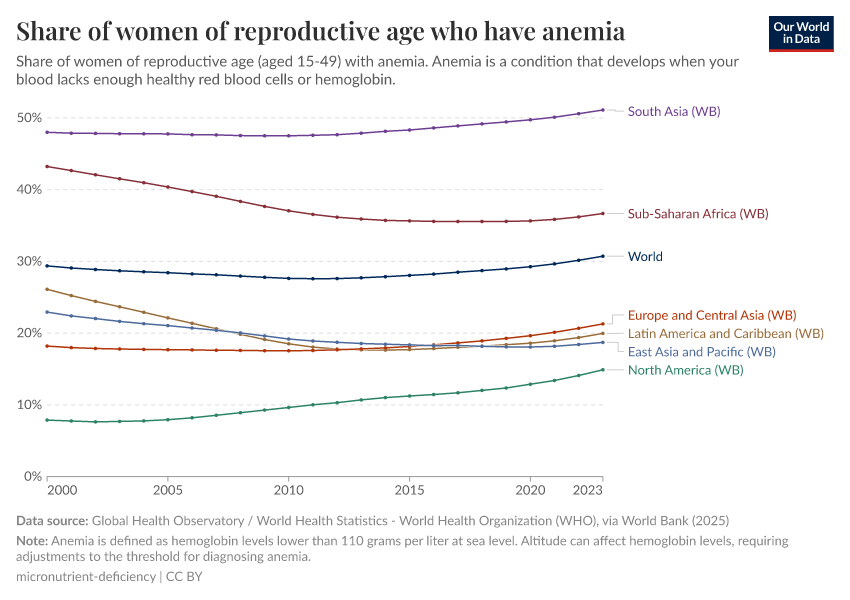In the chart, we see the prevalence of anemia in women of reproductive age.