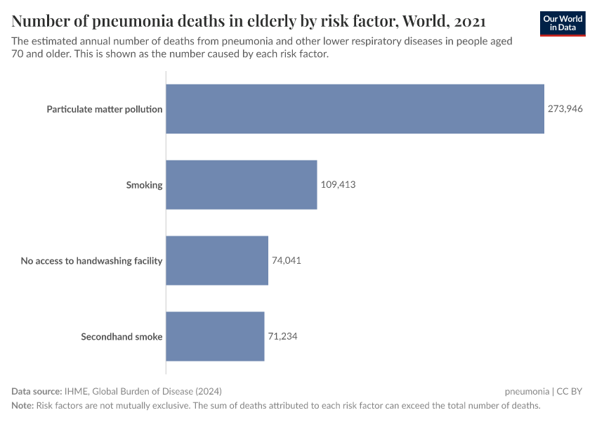 Air pollution is also a major risk factor for pneumonia, as you can see in the chart.