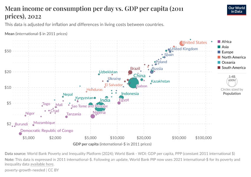 When the average of people’s income in a country is that low, then the only way the majority of people can possibly leave poverty behind is when that country’s economy grows so that average incomes increase.