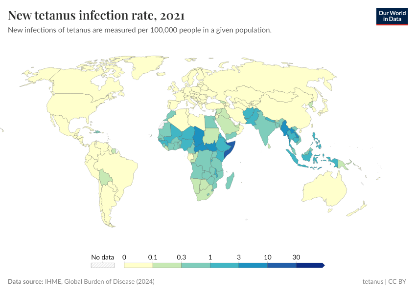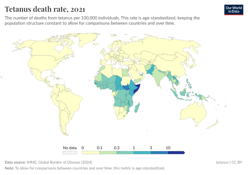 Hannah Behrens, Sophie Ochmann, Bernadeta Dadonaite, and Max Roser (2019) - “Tetanus” Published online at OurWorldinData.org. Retrieved from: 'https://data-auxiliary-trade.owid.pages.dev/tetanus' [Online Resource]BibTeX citation