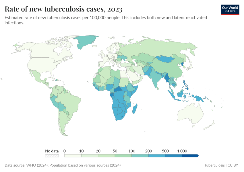 Saloni Dattani, Fiona Spooner, Hannah Ritchie, and Max Roser (2023) - “Tuberculosis” Published online at OurWorldinData.org. Retrieved from: 'https://data-auxiliary-trade.owid.pages.dev/tuberculosis' [Online Resource]BibTeX citation