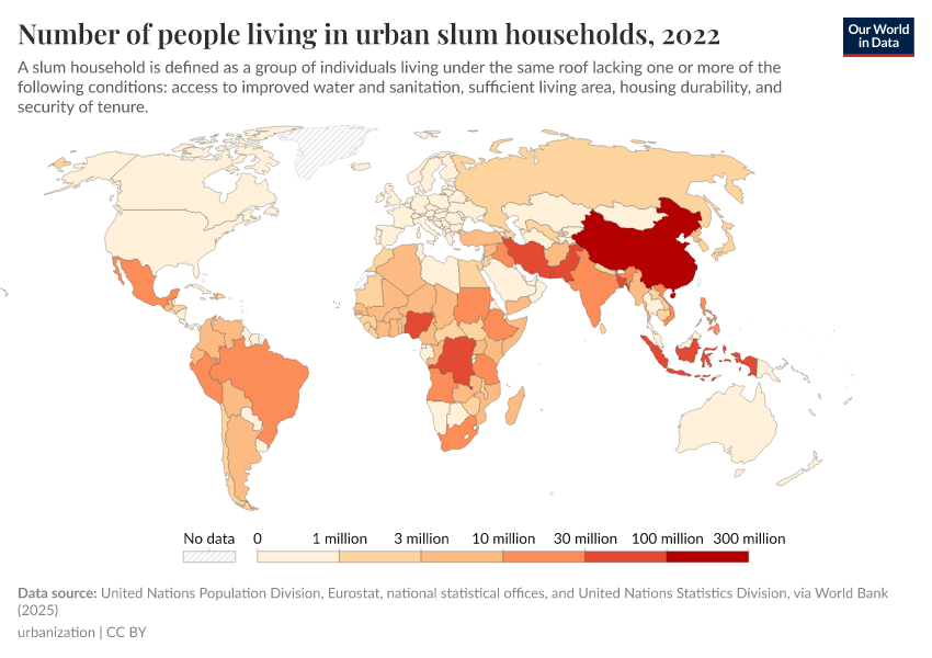 The most recent global estimates suggest just under 1-in-4 people in urban areas live in slum households.