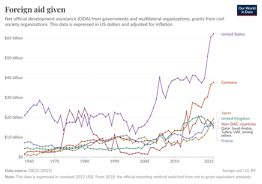 Simon van Teutem and Pablo Arriagada (2025) - “What is foreign aid? How “Official Development Assistance” is measured” Published online at OurWorldinData.org. Retrieved from: 'https://data-auxiliary-trade.owid.pages.dev/what-is-foreign-aid' [Online Resource]BibTeX citation